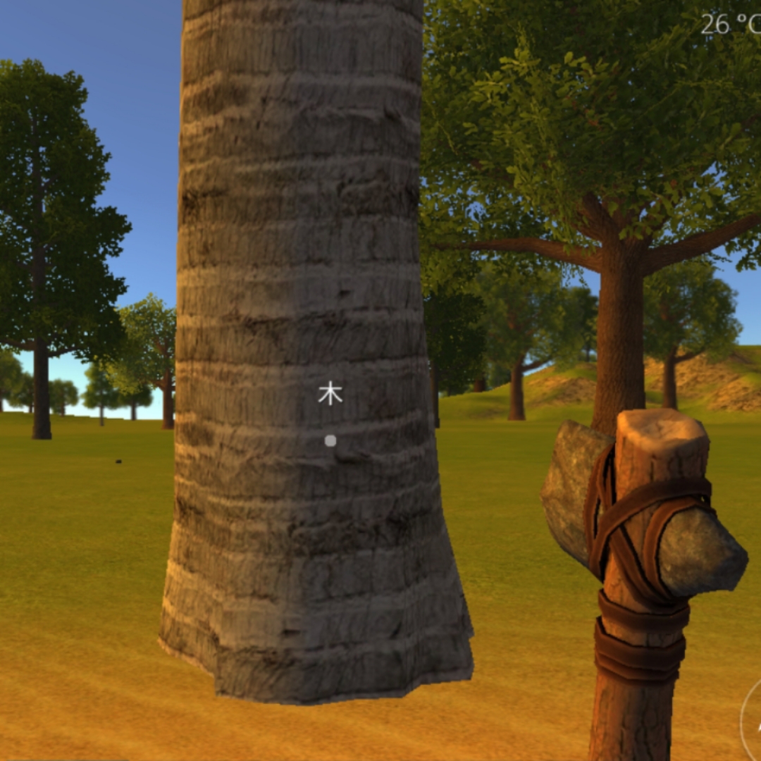 ハチェットという道具を使って叩くことで効率よく木材を入手できる。