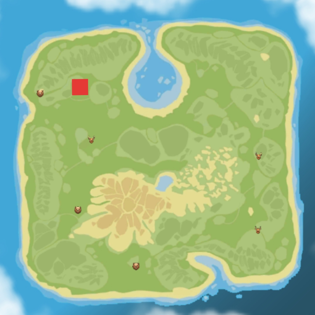 農民島では、マップ左上に倒木がいくつかあり、生えている木を叩くよりも効率よく木材が手に入る。