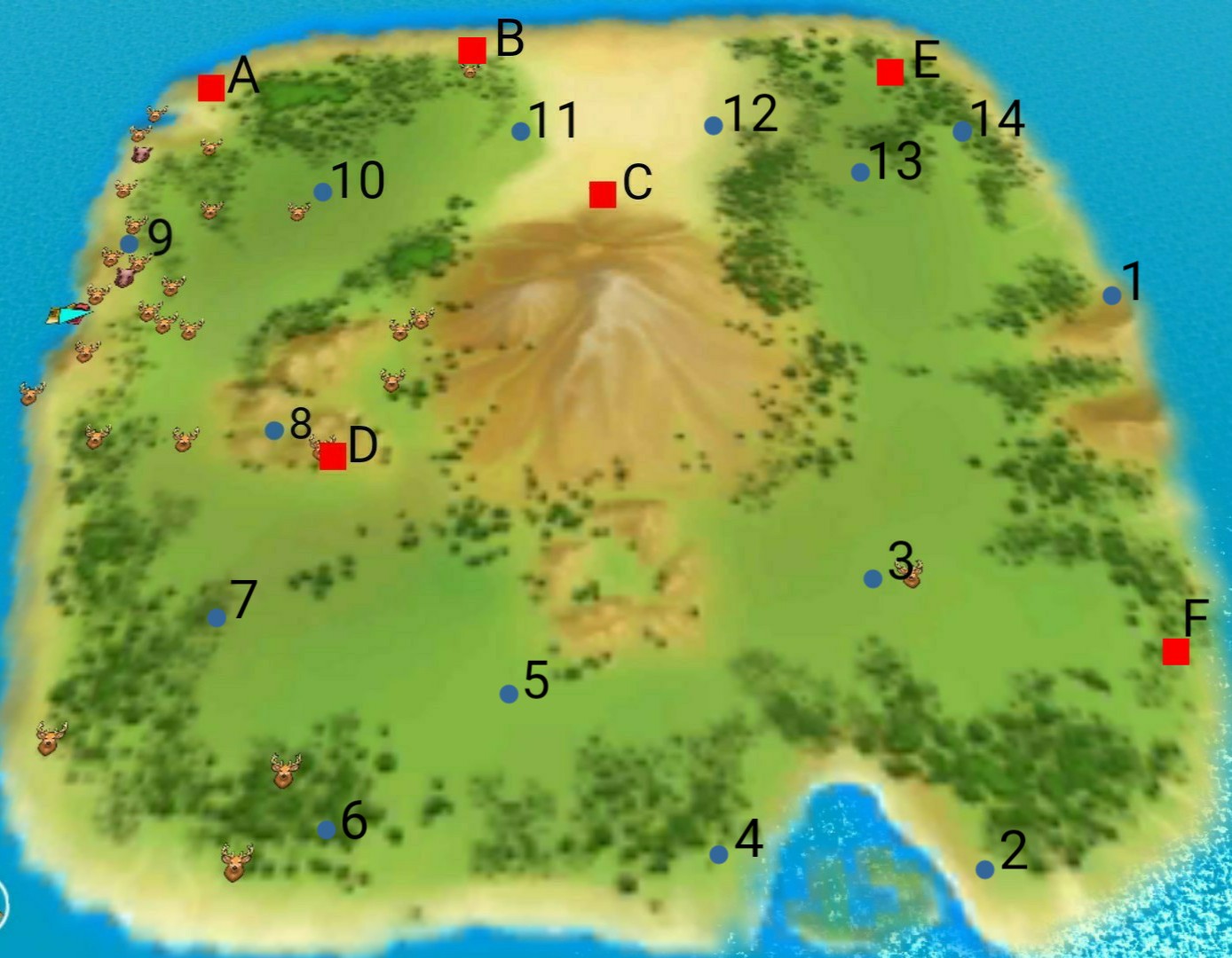 ボートに乗ると行くことができる超巨大な島です。色々な資源や施設、生き物が居ますが広すぎてとにかく大変です。
