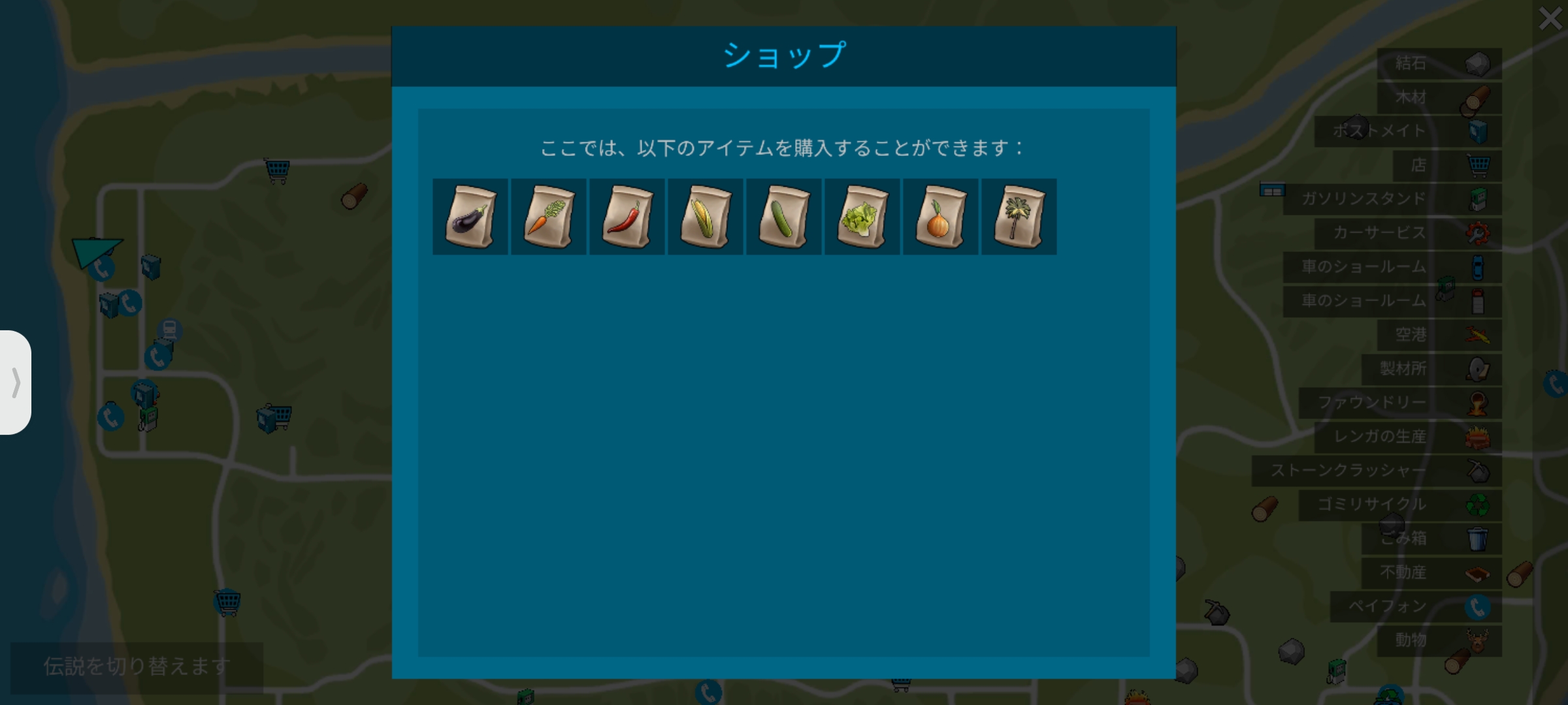 | 売り物(ツール、素材) | ||