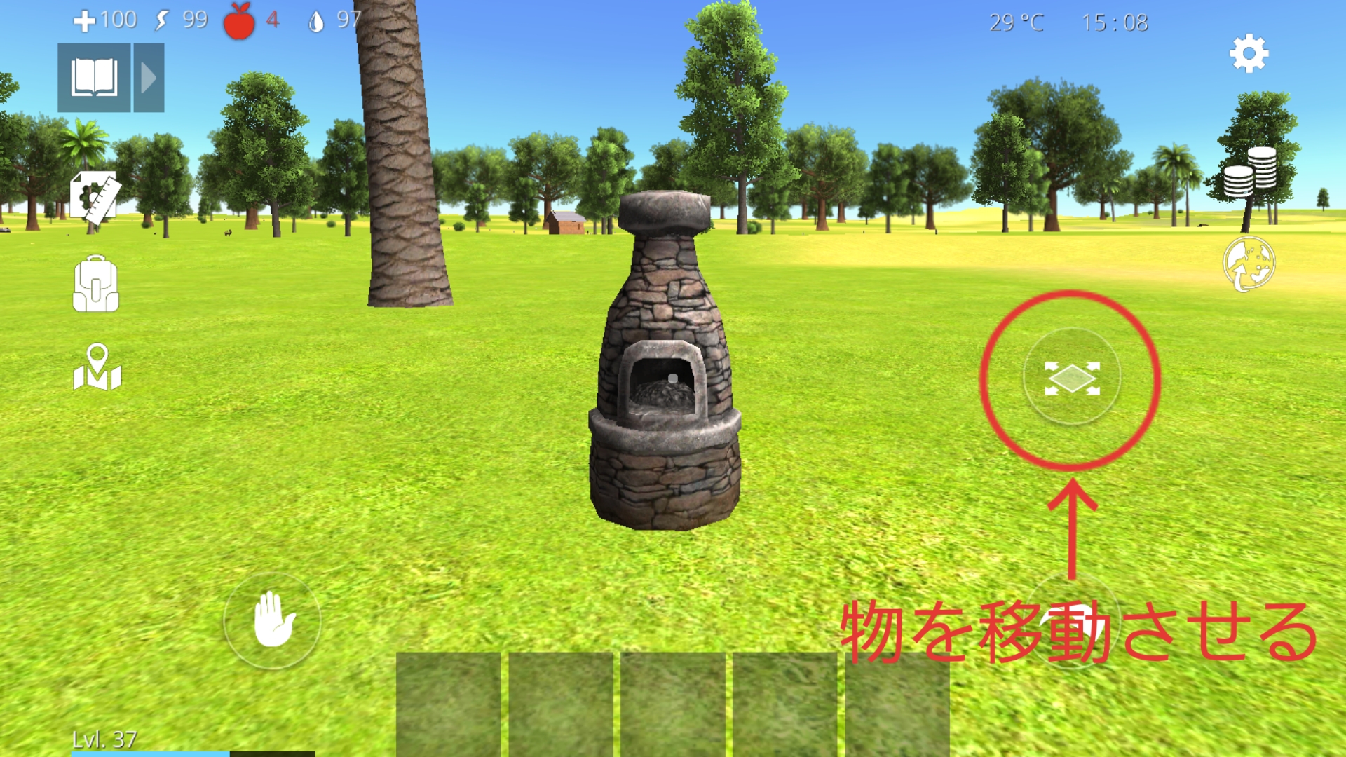 - 物を移動させる…移動させたい物にカーソルを合わせると、このボタンが表示されるので押そう。ただし、建材や一部の物にはこのボタンは表示されません。