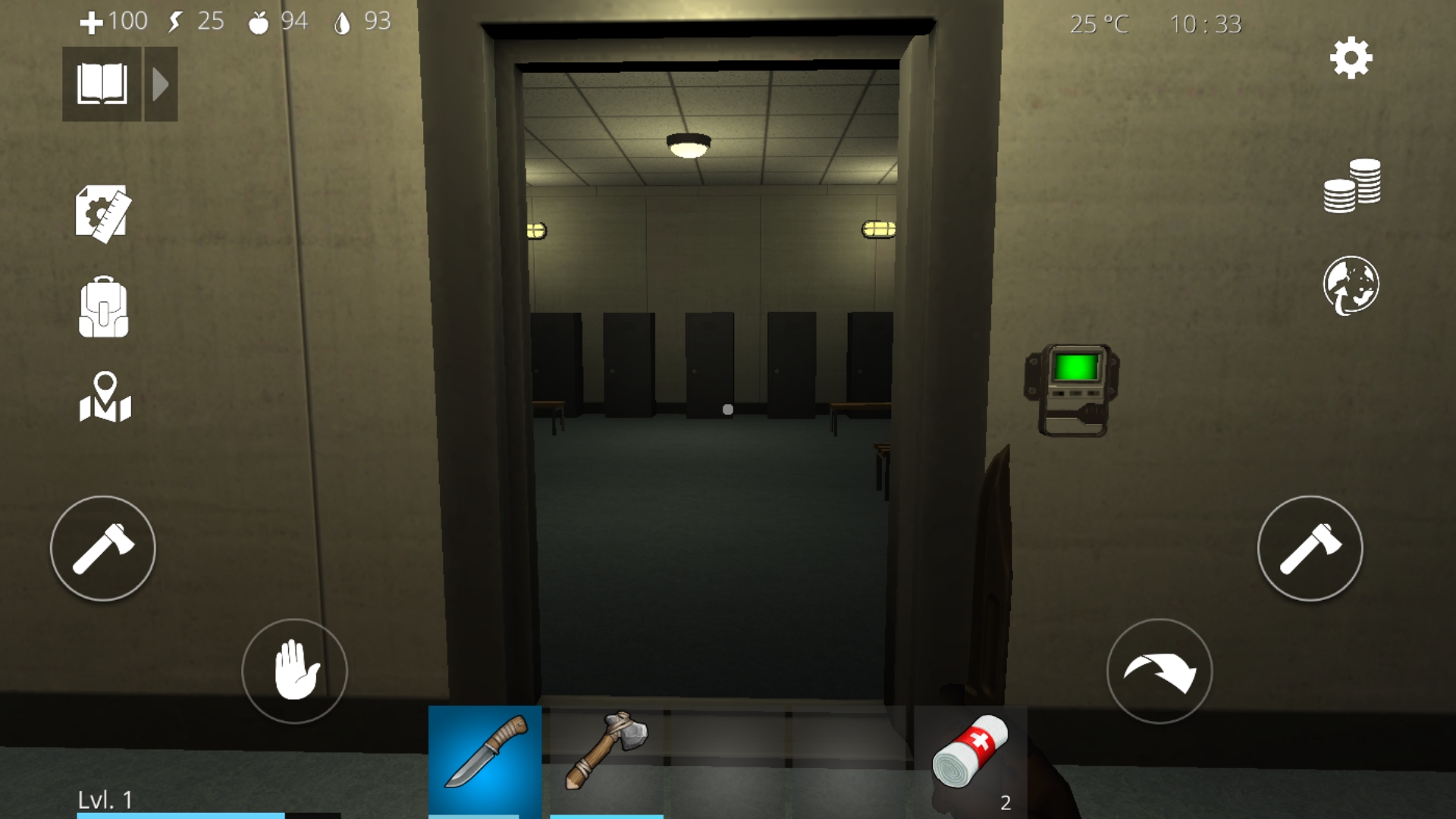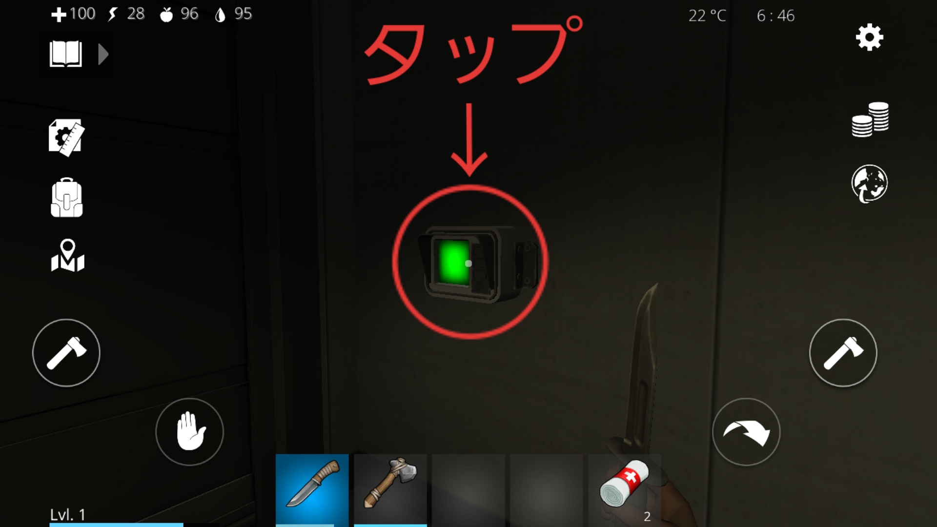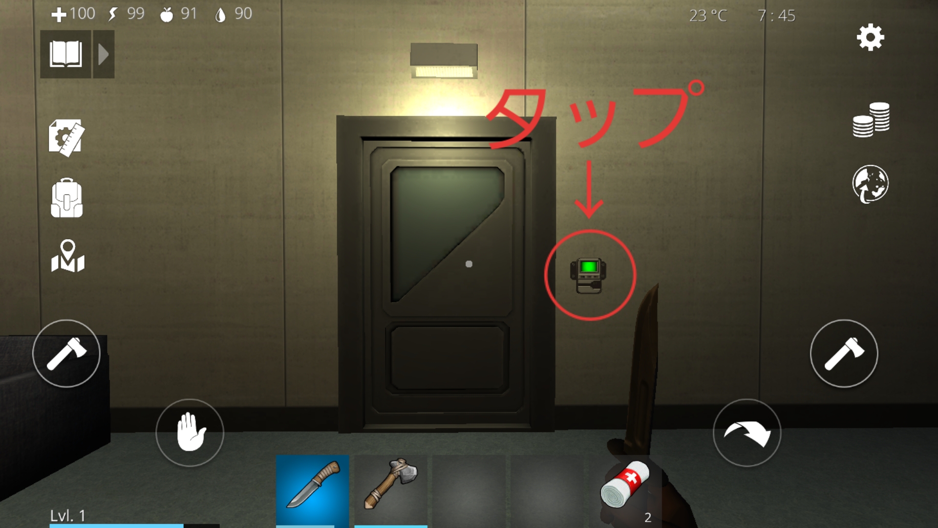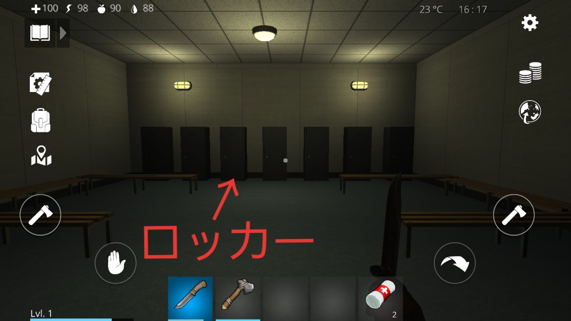 4.部屋に入るとロッカーが全部で12個あり、ロッカーをタップすることでインベントリから資源を回収できる。