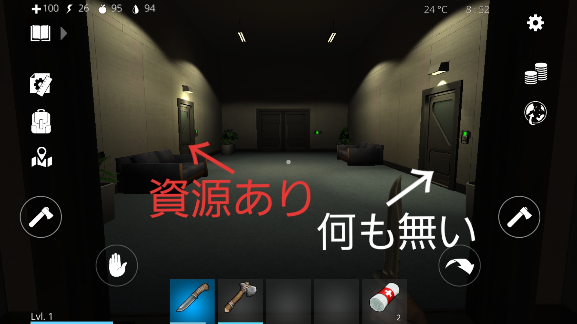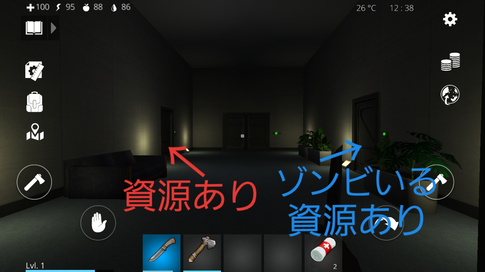 ※資源を回収していると突然、部屋の中にゾンビが入ってきて襲われることがある。