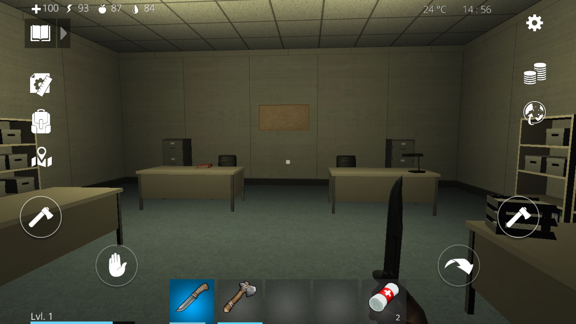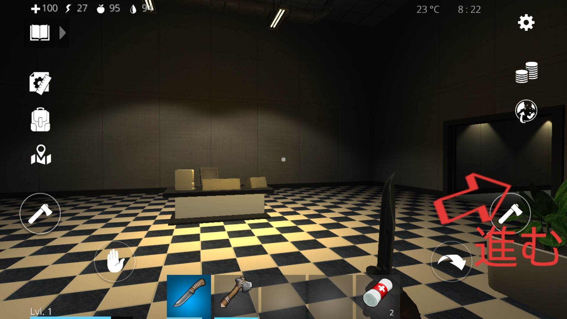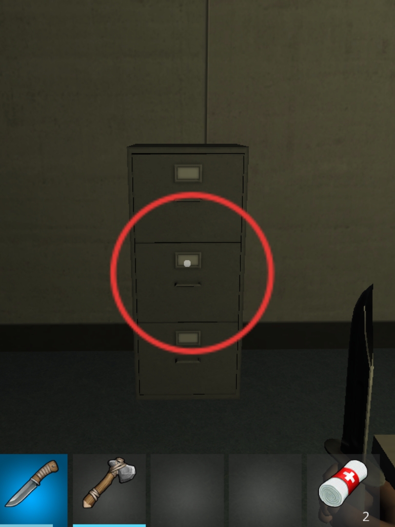 - 机でゾンビを斧で倒す。なるべく机を変えたりする。