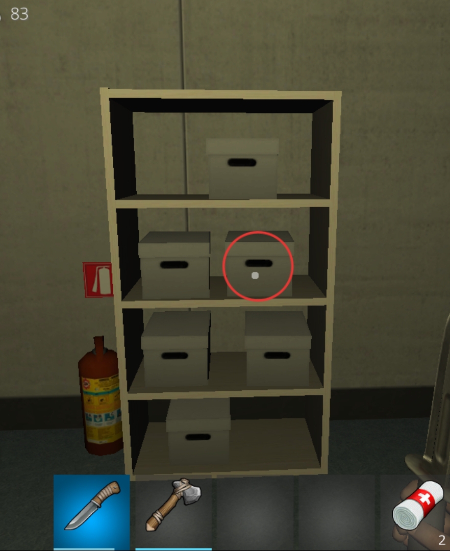 - 右の部屋のゾンビを机に乗って倒す(多いが、壁抜けエリアと同じようにする。多い場合は、机ではなく、棚がいい。)