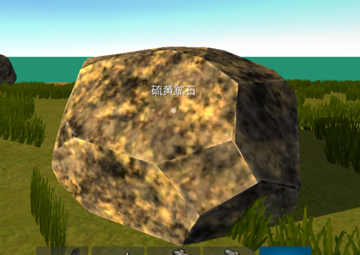 ホーネットの中央の山から少し下の窪みに、木炭とケイ砂が広い範囲だが群生している。農民島の流黄石の近くにもある