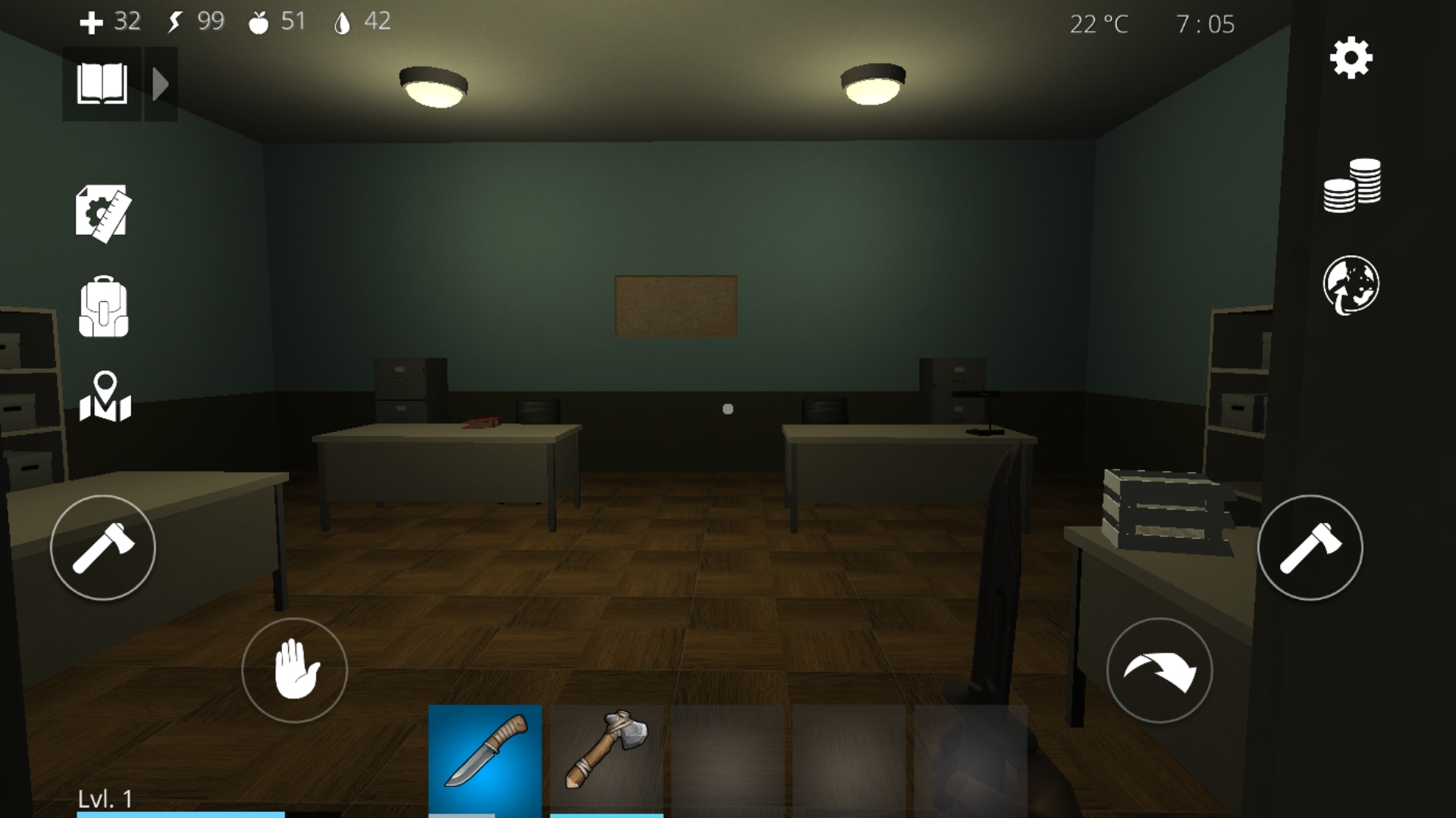 - 机でゾンビを斧で倒す。なるべく机を変えたりする。
